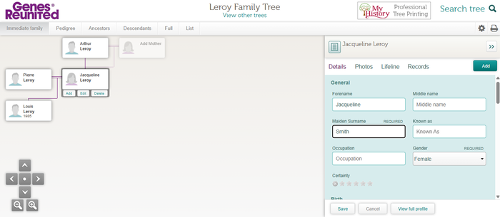 Gratuito al momento della registrazione, facile da usare, Genes Reunited soddisfa tutti i requisiti per creare il proprio primo albero genealogico. Tuttavia, l’albero genealogico proposto, preso da solo, manca di profondità rispetto a quello di concorrenti come MyHeritage o Ancestry.