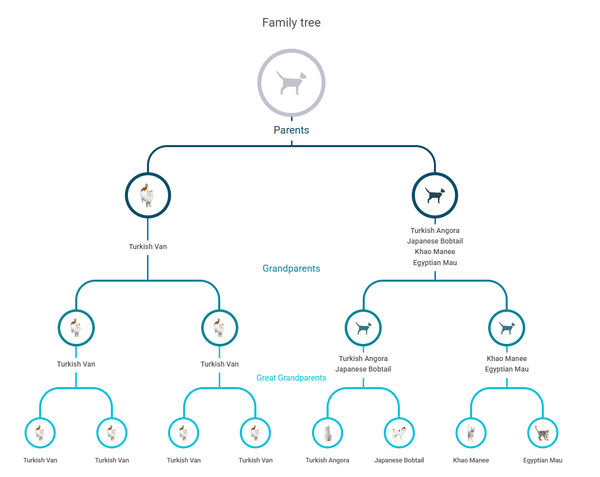 Questa funzione consente di visualizzare il lignaggio genetico del proprio animale domestico su diverse generazioni. L’albero genealogico viene creato automaticamente man mano che altri animali correlati vengono aggiunti al database. È possibile esplorare i rami della famiglia e scoprire cugini lontani.