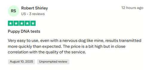 I clienti apprezzano la rapidità dei risultati, talvolta addirittura in anticipo rispetto alle previsioni, e la loro corrispondenza con l’aspetto fisico o il carattere del proprio animale domestico. Altri apprezzano la chiarezza delle spiegazioni e la semplicità del prelievo dei campioni, anche per cani con profili complessi.